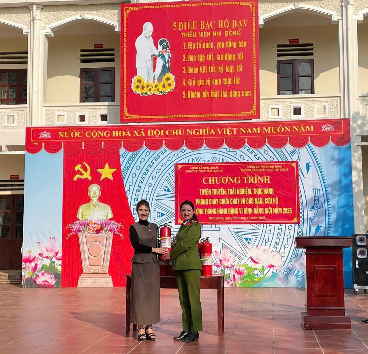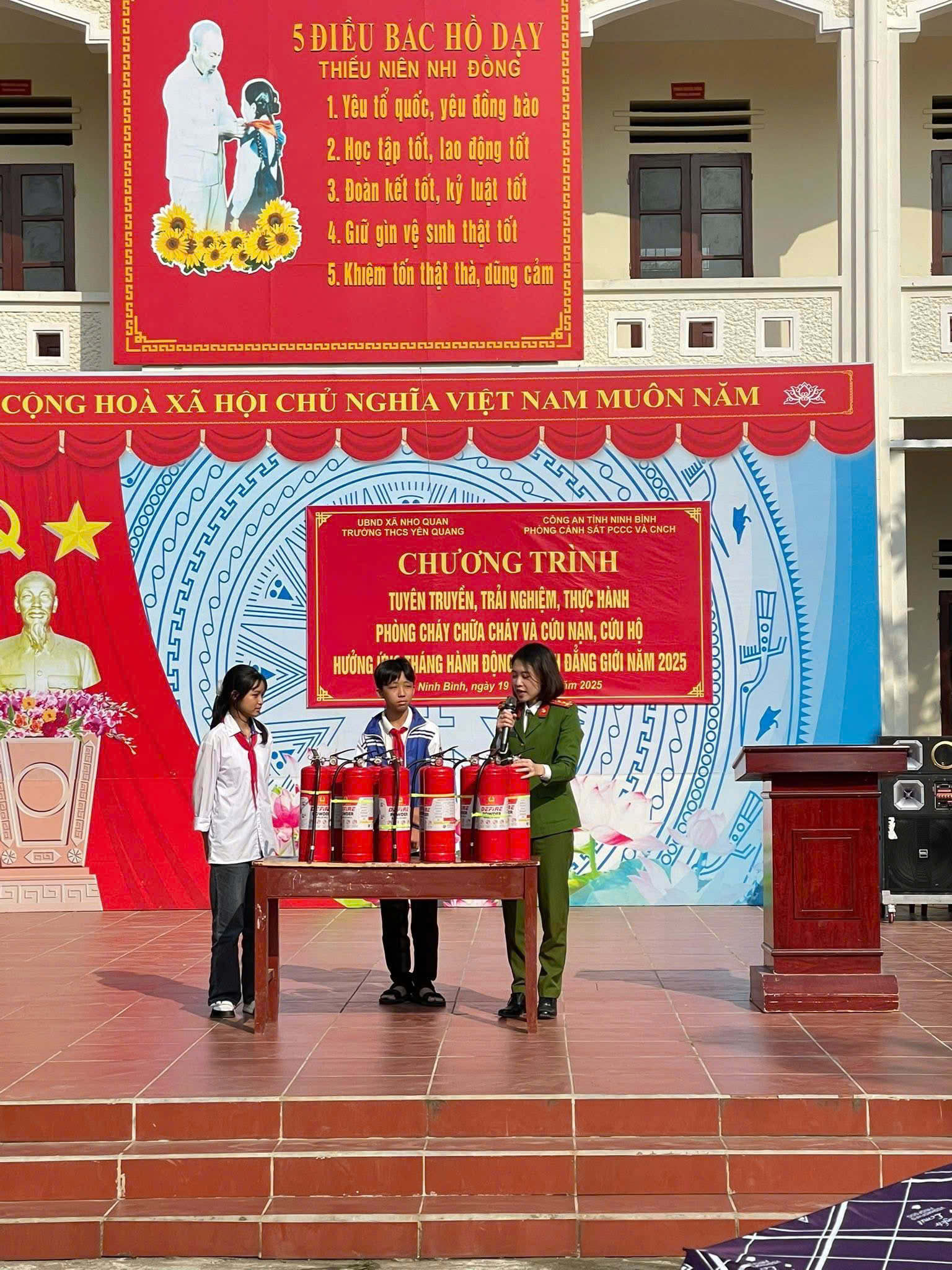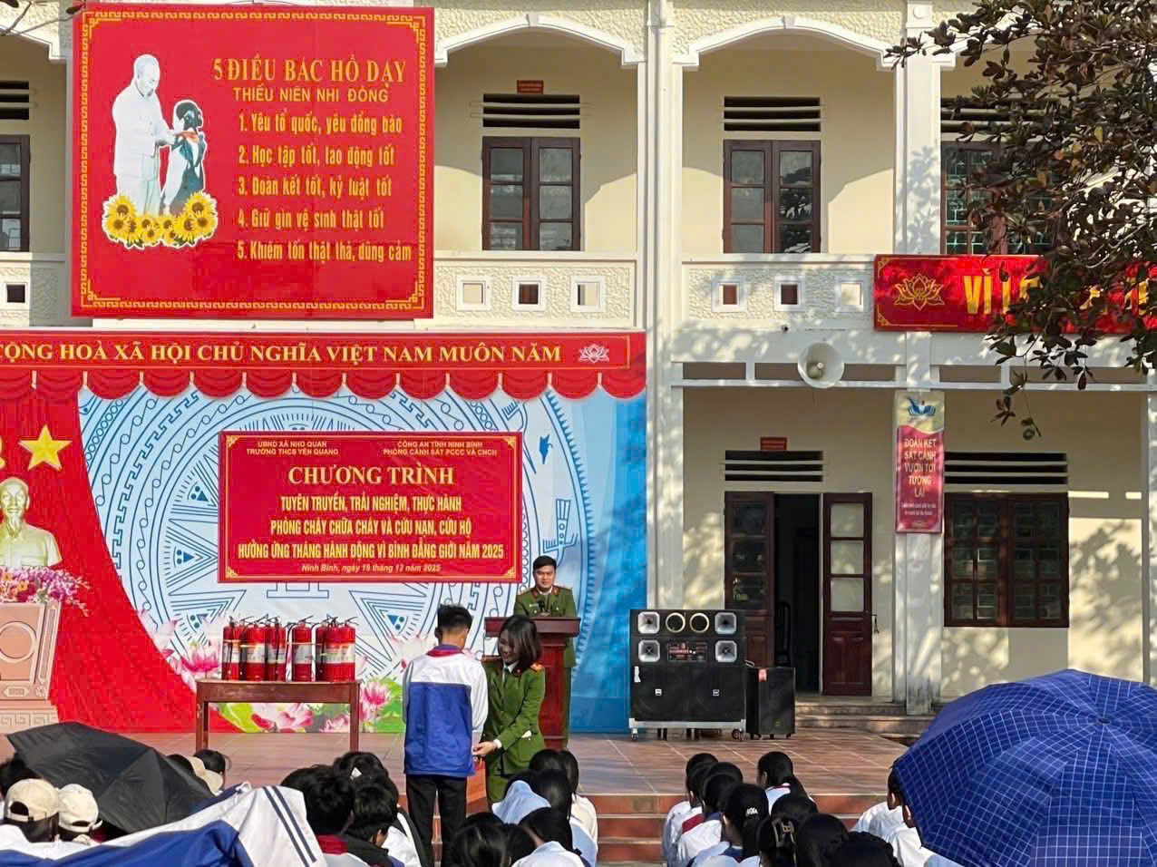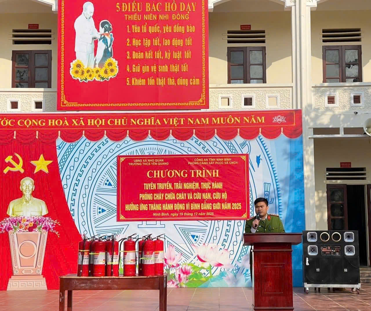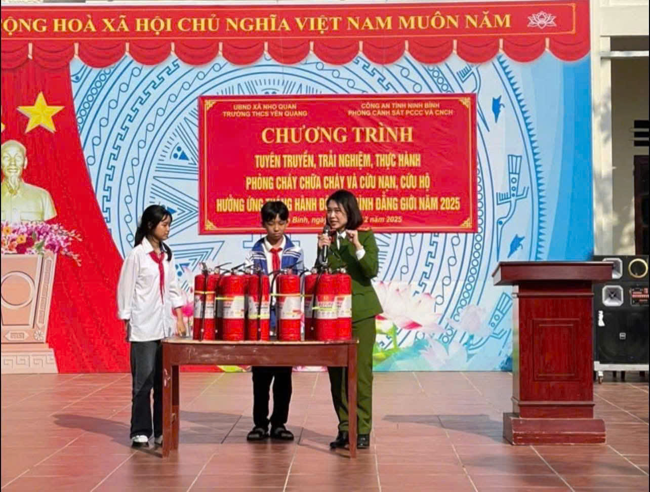 🌞 Sáng ngày 19/12/2025, Hội Phụ nữ Phòng Cảnh sát PCCC và CNCH phối hợp cùng Đội Chữa cháy và CNCH khu vực Nho Quan kết hợp với trường THCS Yên Quang đã tổ chức tuyên truyền, trải nghiệm, thực hành PCCC và CNCH hưởng ứng tháng hành động vì bình đẳng giới năm 2025 tại Trường THCS Yên Quang, xã Nho Quan.