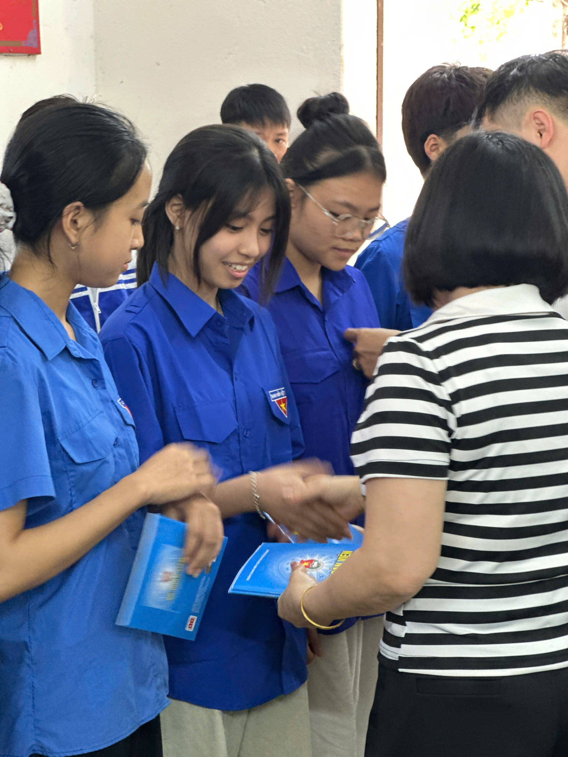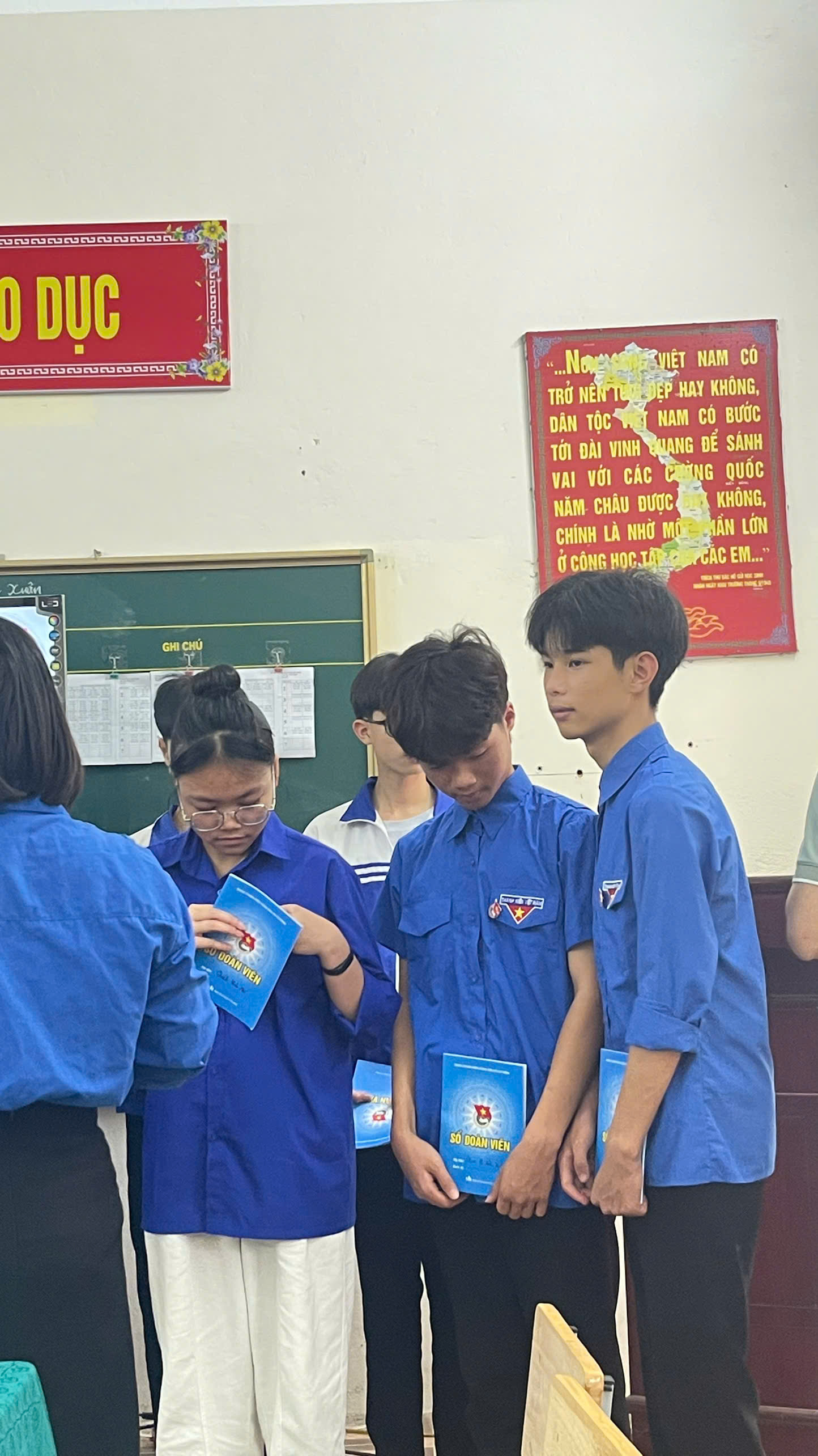 Trong giây phút thiêng liêng, các bạn học sinh đã được đeo huy hiệu Đoàn và chính thức trở thành đoàn viên của Đoàn TNCS Hồ Chí Minh. Trước cờ Tổ quốc, cờ Đoàn và chân dung Chủ tịch Hồ Chí Minh, các đoàn viên mới đã đọc lời hứa, thể hiện quyết tâm phấn đấu, rèn luyện để xứng đáng với danh hiệu cao quý này.