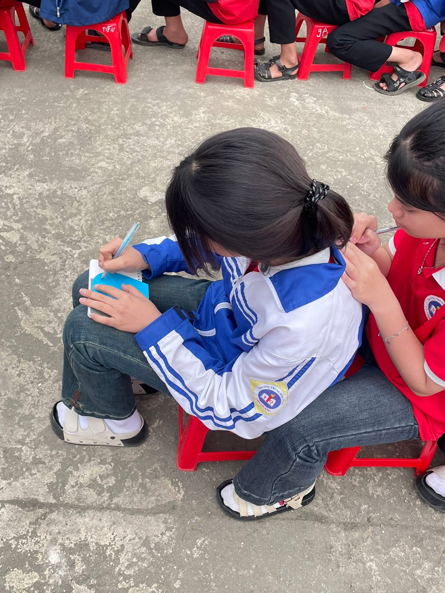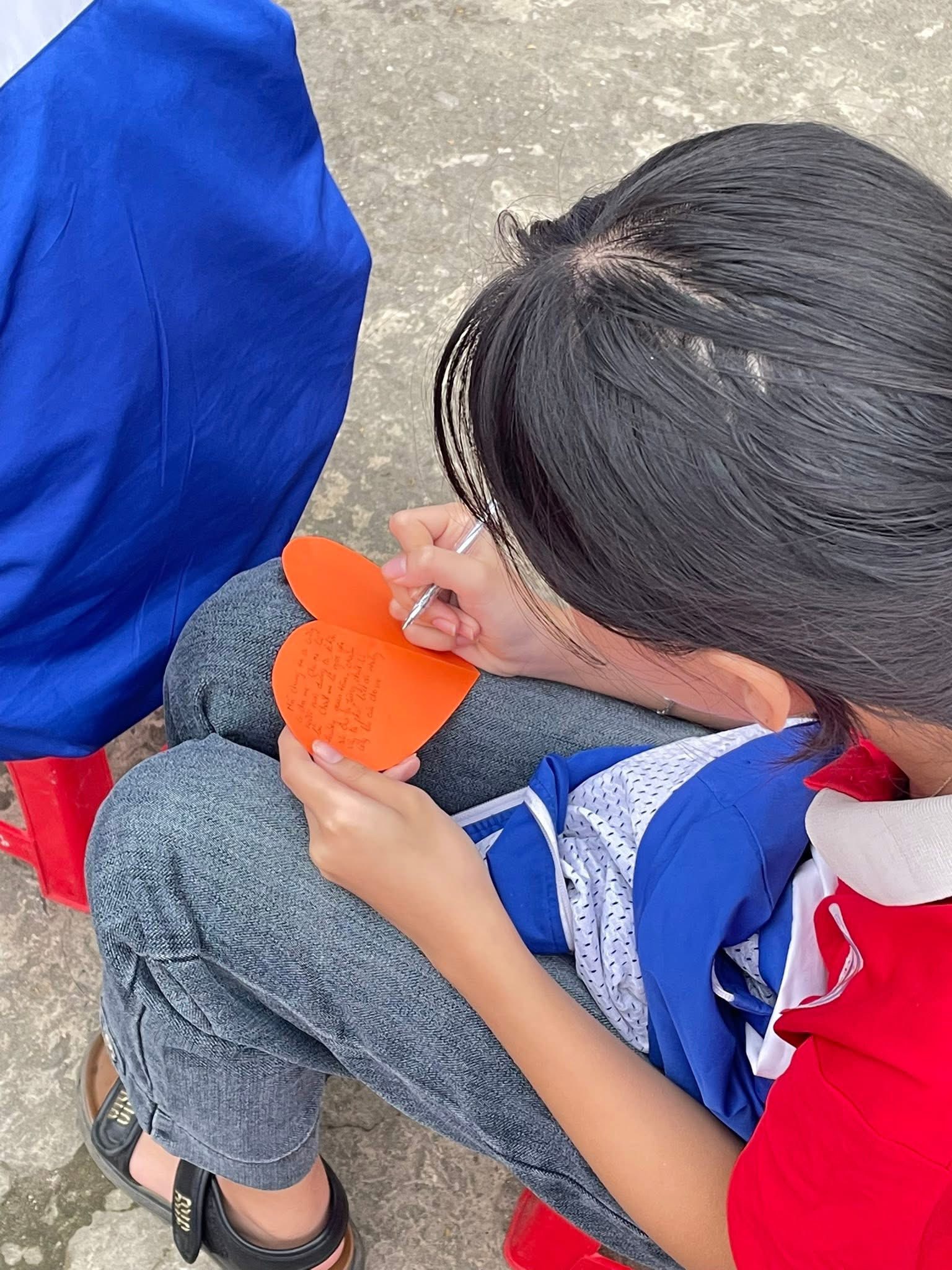 Khoảnh khắc lắng đọng và xúc động nhất của chương trình là khi các em học sinh viết những lời tri ân chân thành lên những tờ giấy hình trái tim đầy màu sắc. Những dòng chữ giản dị như: “Con cảm ơn bố mẹ”, “Em biết ơn thầy cô”… đã trở thành những thông điệp yêu thương ý nghĩa, lan tỏa sự ấm áp và xúc động trong toàn hội trường.